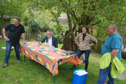 Landrat Christian Engelhardt (2. von links) machte sich gemeinsam mit Florian Schumacher von den Streuobstwiesenrettern, Beate Weis vom Verein Genial Regional und Thomas Brecht vom KOGL Kreis Bergstra...