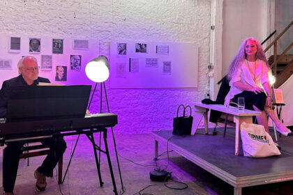 Autorin Silke Wiest liest ihren dritten musikalischen Kurzkrimi, und Komponist Ronald J. Autenrieth begleitet sie am Klavier im Atelier ‚Lilifas‘ in der Eberbacher Kellereistraße. Foto: Pressedienst V...