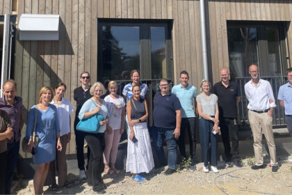 Die Mitglieder des KARMA-Netzwerks besichtigten in Bensheim den Neubau der Grundschule in den Kappesgärten. Foto: Pressedienst Bergstraße KARMA-Netzwerk besucht den innovativen Modul-Neubau der Benshe...