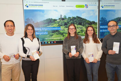 Die erste Kreisbeigeordnete und Gesundheitsdezernentin Angelika Beckenbach (2. von links) informierte gemeinsam mit dem Vorsitzenden des Weiterbildungsverbundes Allgemeinmedizin Bergstraße sowie leite...