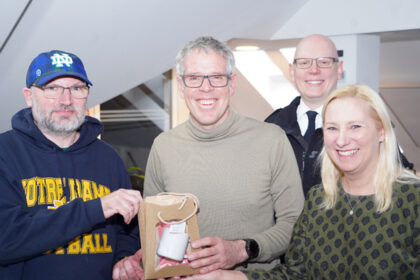 Überbrachten symbolisch ein großes Dankeschön: Landrat Christian Engelhardt (Mitte) und Diana Stolz (Hessische Ministerin für Familie, Senioren, Sport, Gesundheit und Pflege) in der Leitstelle des Kre...