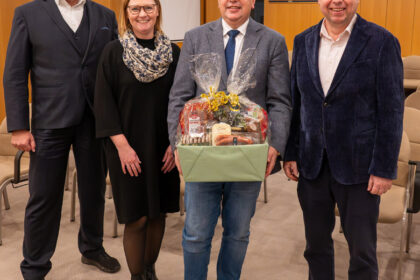 Als Dankeschön für seine Tätigkeit als Verbandsvorsitzender beim Zweckverband Zentrum Gemeinschaftshilfe im Odenwaldkreis wurde Bürgermeister Dietmar Bareis (3. von links) ein Präsentkorb überreicht. ...