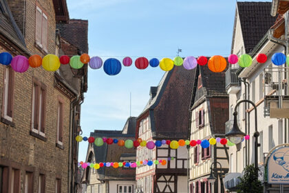 150 farbenfrohe Lampions zieren jetzt wieder die Bensheimer Gerbergasse. Pressedienst Bensheim BENSHEIM. – Die Bensheimer Innenstadt ist wieder ein Stück bunter geworden: In der Gerbergasse habe...