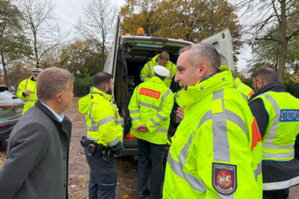 Erster Stadtrat Frank Daum (links) überzeugt sich vor Ort bei der Schulung der Bensheimer Stadtpolizei über deren Engagement und Professionalität. Foto: Pressedienst Bensheim Schulung für die Stadtpol...